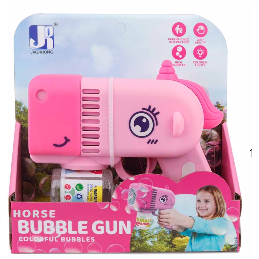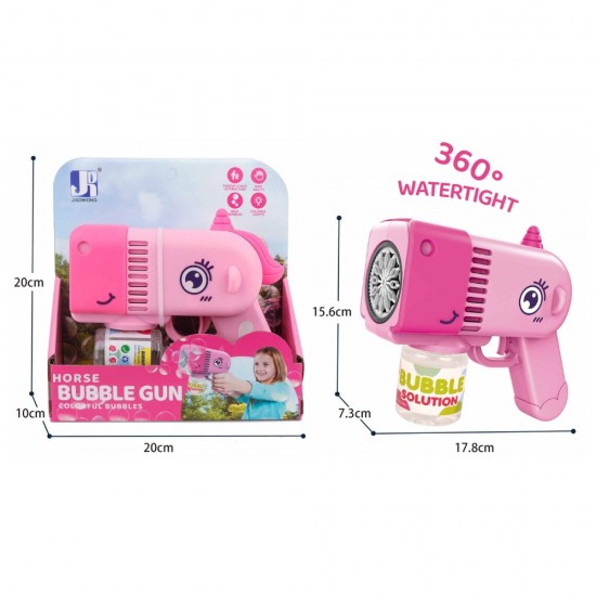 Adauga un strop de magie si culoare orelor de joaca cu pistolul de facut baloane in forma de unicorn magic! Aceasta jucarie este alegerea ideala pentru activitatile in aer liber, fiind conceputa sa genereze un flux continuu de baloane rapid si fara efort, aducand instantaneu zambete si veselie pe fetele celor mici.