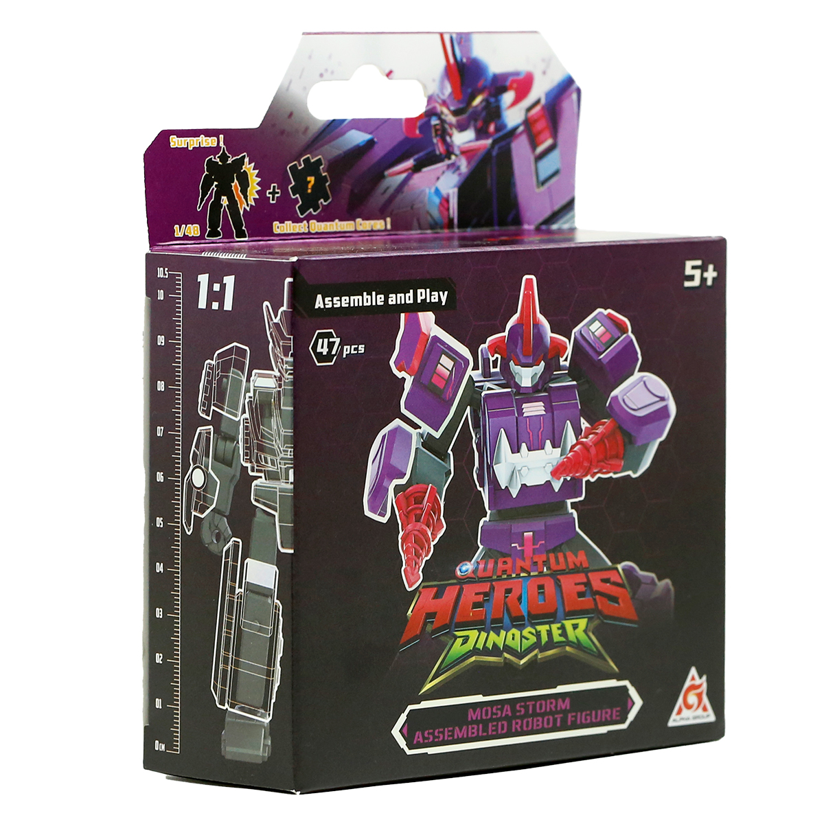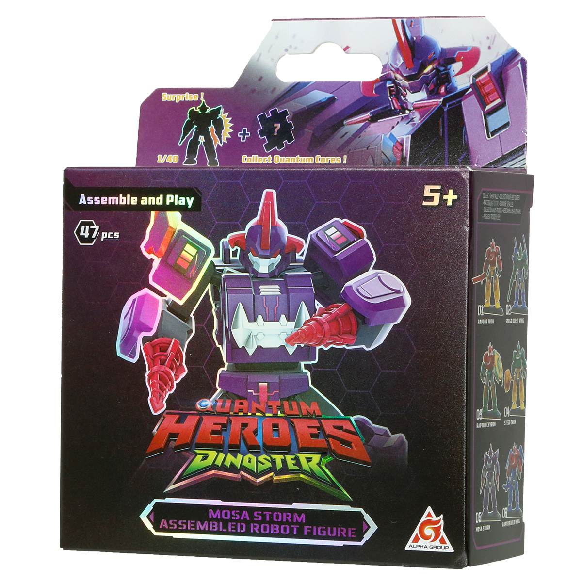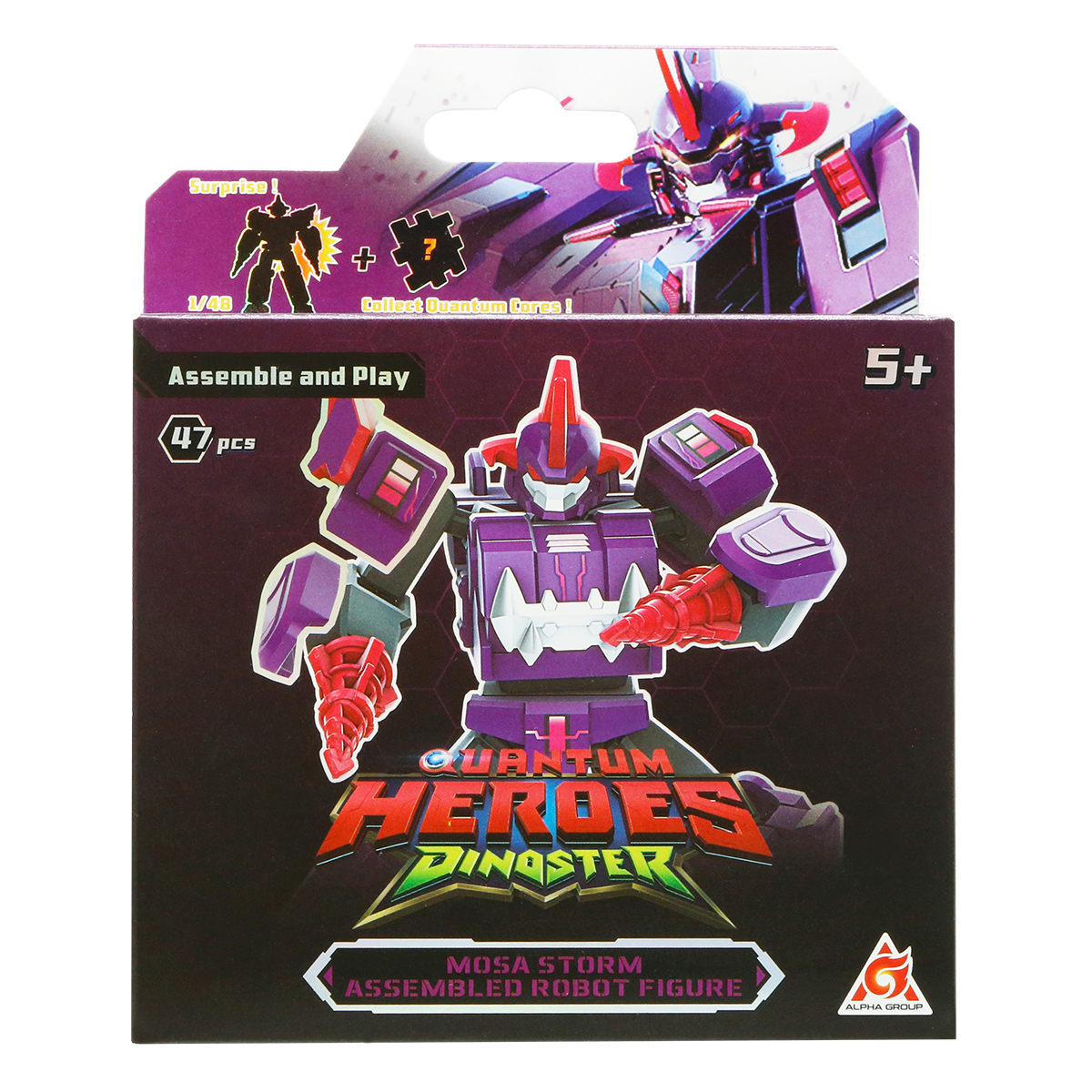 Setul include si un element special din Nucleul Cuantic cu imaginea eroului principal. Colecteaza toti eroii din serie ca sa completezi Nucleul Cuantic! Piesele au margini care se imbina intre ele, astfel incat poti crea un cub. Robotul se construieste din 44 piese, iar partile pot fi combinate cu alte personaje Dinoster pentru a crea un robot nou si original.