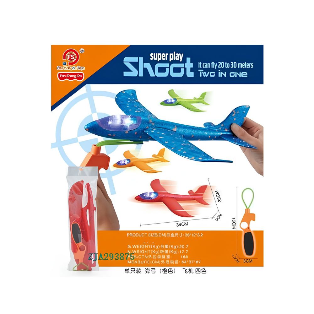 Pregateste-te pentru decolare cu noul avion din polistiren super-rezistent! Aceasta jucarie interactiva combina placerea zborului cu actiunea captivanta a unui lansator tip prastie (slingshot). Avionul este proiectat pentru a plana pe distante lungi, atingand pana la 20-30 de metri inaltime sau distanta, oferind un spectacol aerian deosebit.