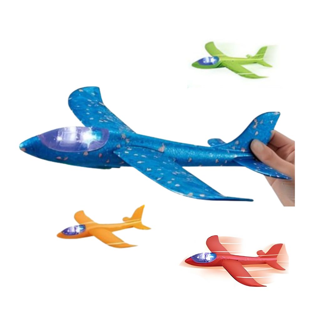 Dotat cu lumini LED stralucitoare, avionul poate fi lansat chiar si la amurg, creand efecte vizuale fascinante pe cer. Materialul flexibil din polistiren (EPP) asigura o durabilitate crescuta la impact, fiind sigur pentru copii si usor de manevrat. Este accesoriul perfect pentru iesirile in parc, la plaja sau in gradina, incurajand activitatea fizica si joaca in aer liber.