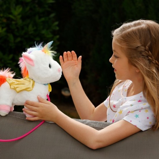Jucaria de plus interactiva UNICORN cu lesa este un prieten amuzant care te va urmari peste tot!