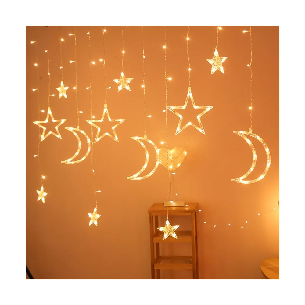 Ghirlanda luminoasa de Craciun Stelute-Luna, perdea de tip ploaie, 3m, alb cald, ZJA360460