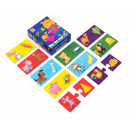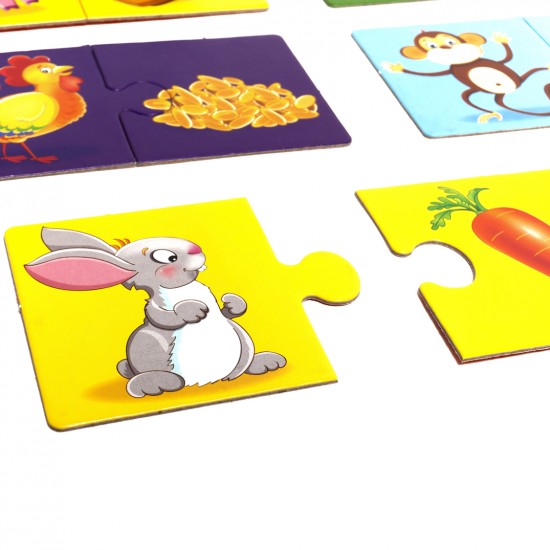 Conectam puzzle-uri in perechi. Studierea animalelor si bunatatile lor preferate.