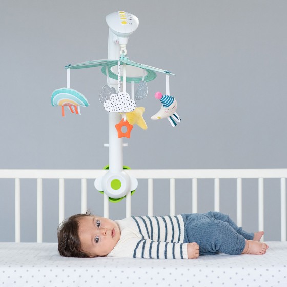 "Развивает когнитивные навыки и эмоциональный интеллект с помощью сочетаниия музыки, движения и света, успокаивает ребенка и помогает развить чувства новорожденного.