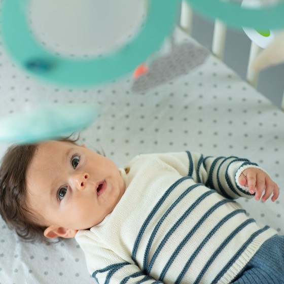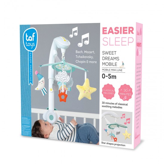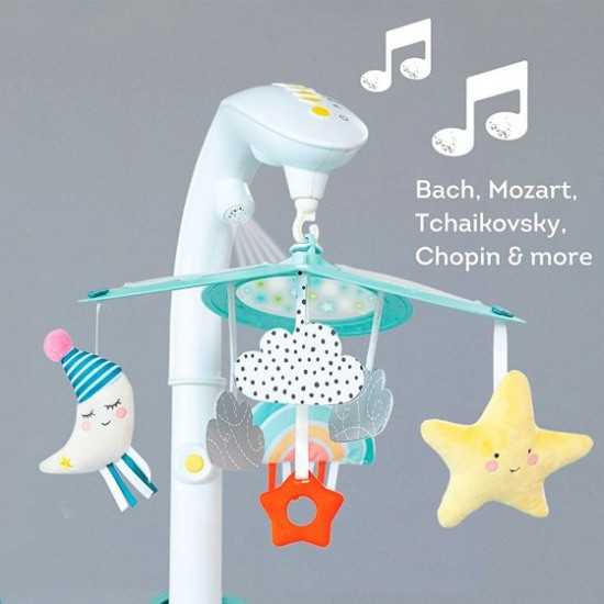 Успокойте своего малыша перед сном с помощью музыкального мобиля с проектором коллекции "Крошка Месяц" - СЛАДКИЕ СНЫ! До 30 минут красивых классических мелодий, которые не повторяются. Этот стильный мобиль имеет изысканный вид, он идеально впишется в любую современную детскую комнату, обеспечивая при этом развитие Вашего ребенка.