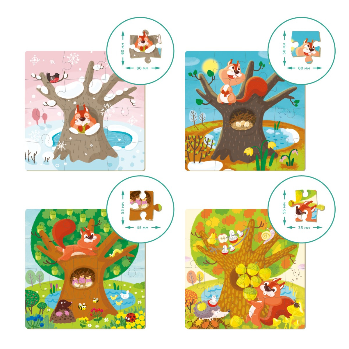 Что может быть лучше головоломки? Конечно же - четыре пазла в одной коробке! "Времена года" представляют очаровательные изображения природы, которые помогают детям узнать о смене времен года.