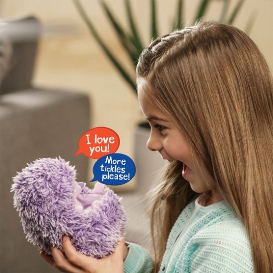 Маленький ежик Хиггл реагирует на прикосновения и издает забавные звуки.