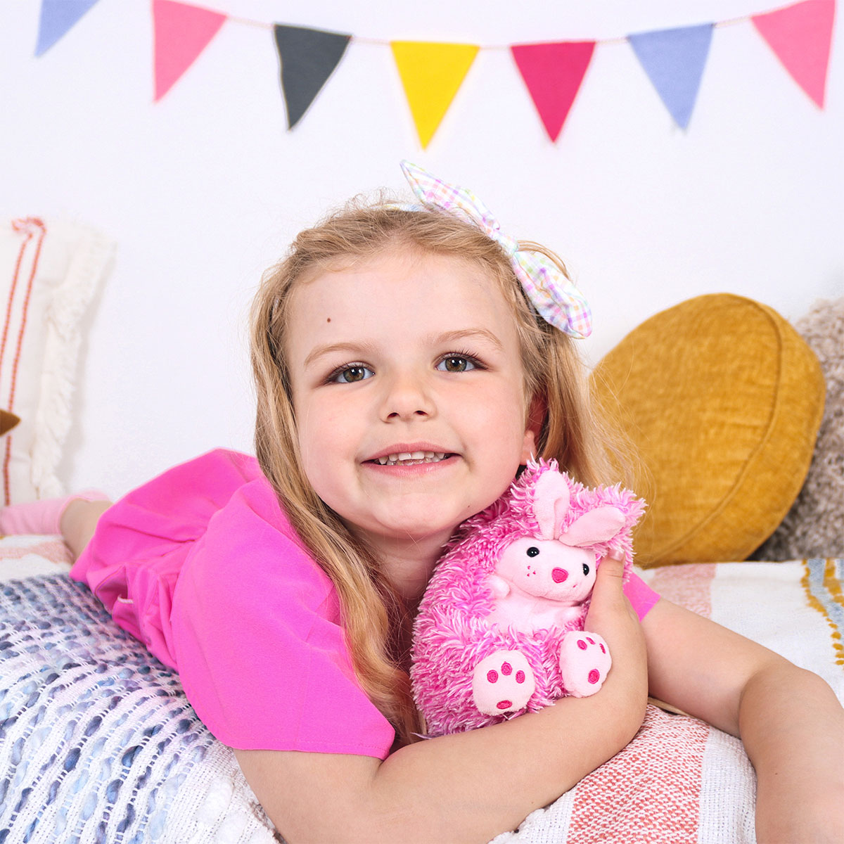 Маленькая зайка Биби реагирует на прикосновения и издает забавные звуки.