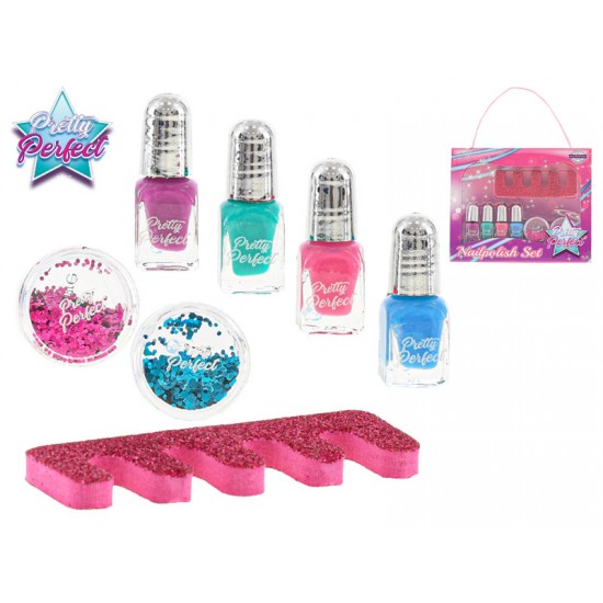 Маникюрный набор из 4 лаков для ногтей Pretty Perfect, губки для ногтей и блесток
