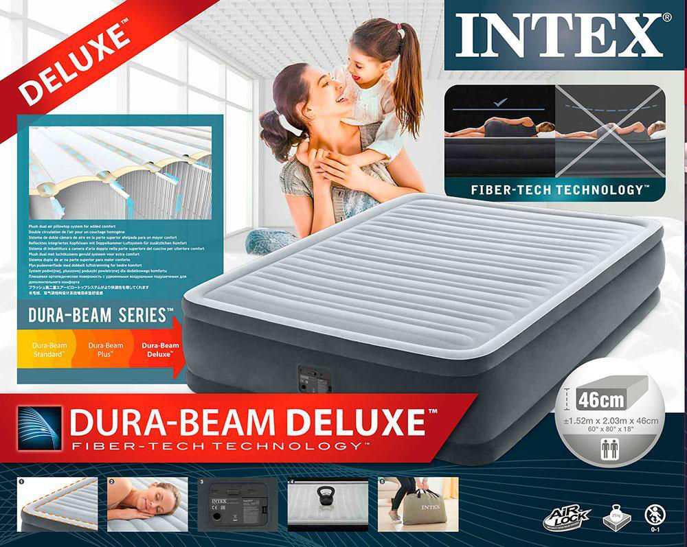 Надувная кровать Intex "Comfort-Plush" - отличный выбор для комфорта и практичности как дома, так и в путешествиях. С размерами 152 x 203 x 46 см и высотой 46 см, она обеспечивает опыт, схожий с традиционной кроватью.