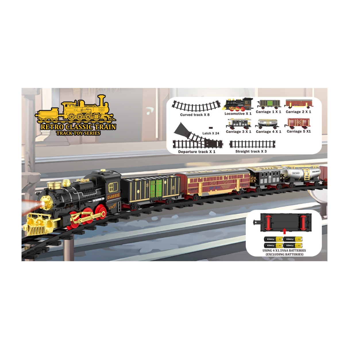 Классический поезд с железной дорогой и 5 вагонами, звуками, светом