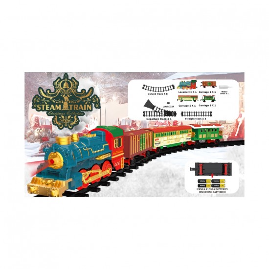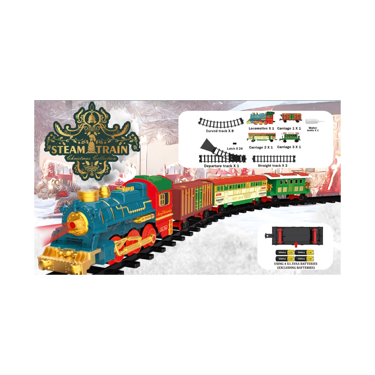 Классический поезд Xmas с железной дорогой и 3 вагонами, звуками, светом и эффектом дыма