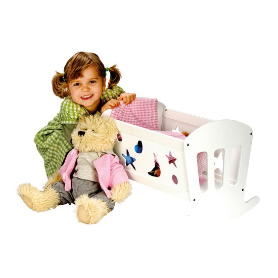 Ваша маленькая девочка может взять на себя роль мамы и разместить кукол в этой колыбели.