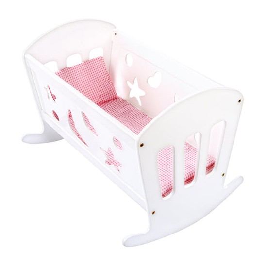 Люлька для кукол, деревянная, белая, с постельным бельем 49x37 см
