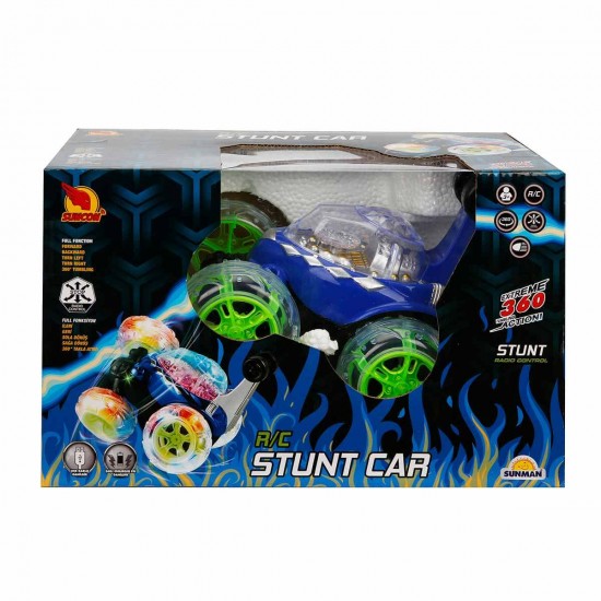 869-23B Masina cu telecomanda Stunt Car, cu 6 roti, rotire 360, efecte luminoase, rosie/albastra