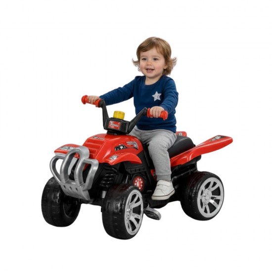 Функциональные педали помогают детям изучать принципы движения и развивать силу ног в игровой форме. Красный цвет делает ATV еще более привлекательным и добавляет радости в игру.