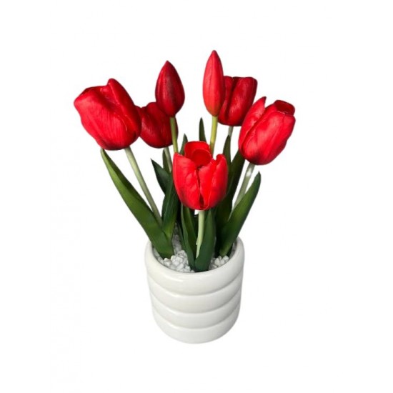 Искусственные тюльпаны в горшке 31 см, красные, ZJA361811