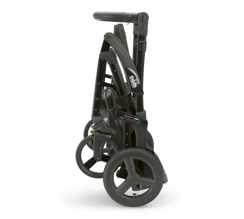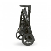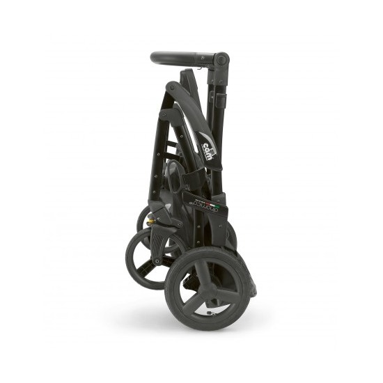 ПРОГУЛОЧНАЯ КОЛЯСКА: алюминиевые шасси с переставляемым прогулочным блоком (в направлении против хода движения от 0 до 12 месяцев или в направлении по ходу движения от 12 до 36 месяцев) – запатентованная система Via Vai System Reverse, регулируемая ручка, надувные задние колеса с металлическими подшипниками и централизованным тормозом, мягкие передние и задние амортизаторы, спинка регулируется движением одной руки в 4 позициях одновременно с подставкой для ножек, передние вращающиеся колеса с функцией блокировки, съемный бампер, укрепленное сиденье, подлокотники, пятиточечный ремень. Укомплектована следующими аксессуарами: капюшон, накидка на ножки, корзина для покупок. Обивка легко снимается и стирается при температуре 30°C. Компактное складывание вместе с прогулочным блоком, установленным как по ходу движения, так и против движения;
