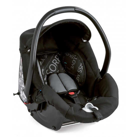 АВТОКРЕСЛО: соответствует европейскому стандарту безопасности ECE R44/04, подходит для группы 0+ (0-13 кг), анатомический подголовник с боковой защитой и поддержкой спины, многопозиционный съемный козырек, пятиточечный ремень с мягкими нескользящими накладками и ремешком между ножек, практичный механизм для регулирования высоты ремня, регулируемый адаптер для ремня безопасности, основание с опцией качания на нескользящих резиновых ножках. Может быть установлено на автомобильное сиденье при помощи трехточечного ремня безопасности в направлении против хода движения.