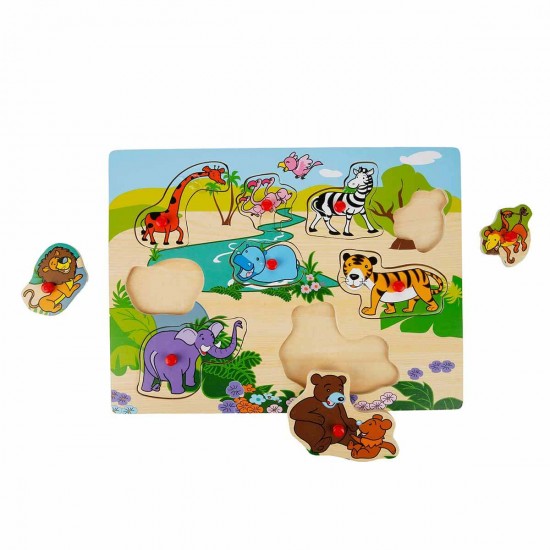 В этой головоломке изображены животные, которых ребенок должен распознать и разместить в соответствующем месте. Сделать это будет очень легко благодаря кнопкам на каждой детали.