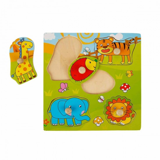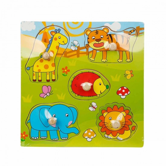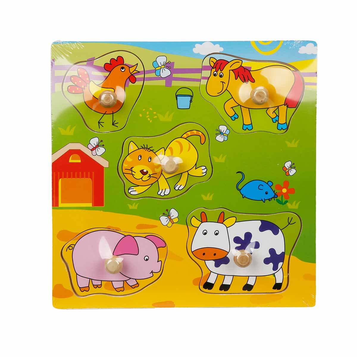 Деревянный пазл Животные, с кнопкой 5 эл. 22 x 2 x 22 см разные типы