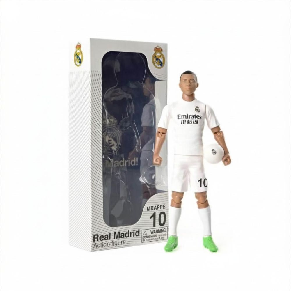 Фигурка с подвижными суставами Football - Real Madrid: Килиан Мбаппе №10 - это коллекционная игрушка, посвященная знаменитому французскому футболисту Килиану Мбаппе, одному из главных игроков клуба Real Madrid. Фигурка выполнена в фирменной форме команды и позволяет поклонникам футбола воссоздавать зрелищные игровые моменты.
