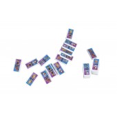 В комплект входит 28 домино, металлический ящик для хранения.