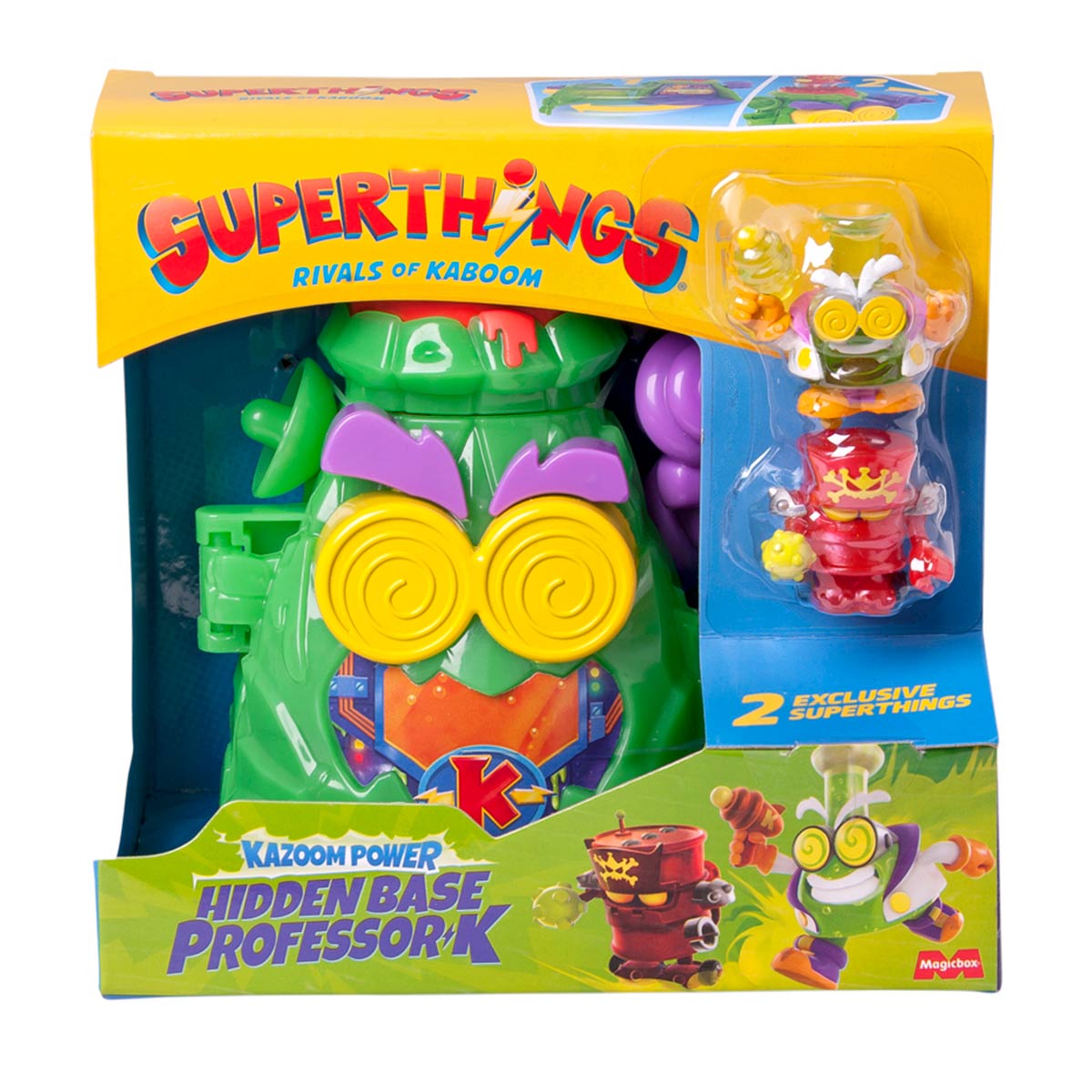 Добро пожаловать в город Кабум, где герои и злодеи SuperThings постоянно сражаются! Зловещий, изобретательный и неустанный - это Профессор К. В игровом наборе серии Kazoom Power - Скрытая база Профессора К вы найдете его секретную лабораторию, где он создает опасные изобретения против героев Кабума. Выбирайте сторону добра или зла, собирайте другие наборы SuperThings и устраивайте эпические битвы!