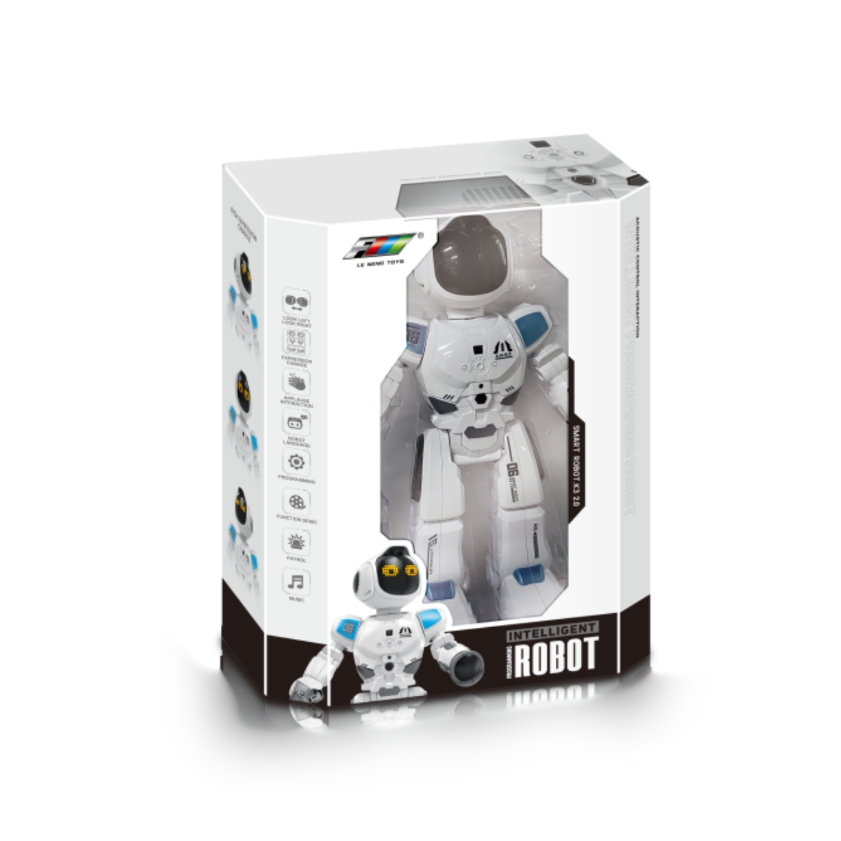 Прикоснитесь к сенсорной кнопке, и интеллектуальный говорящий робот будет двигаться вперед, назад, поворачивать налево, направо. Кроме того, он хорошо умеет говорить, петь и танцевать. Он не только друг детей, но и хороший детский педагог.