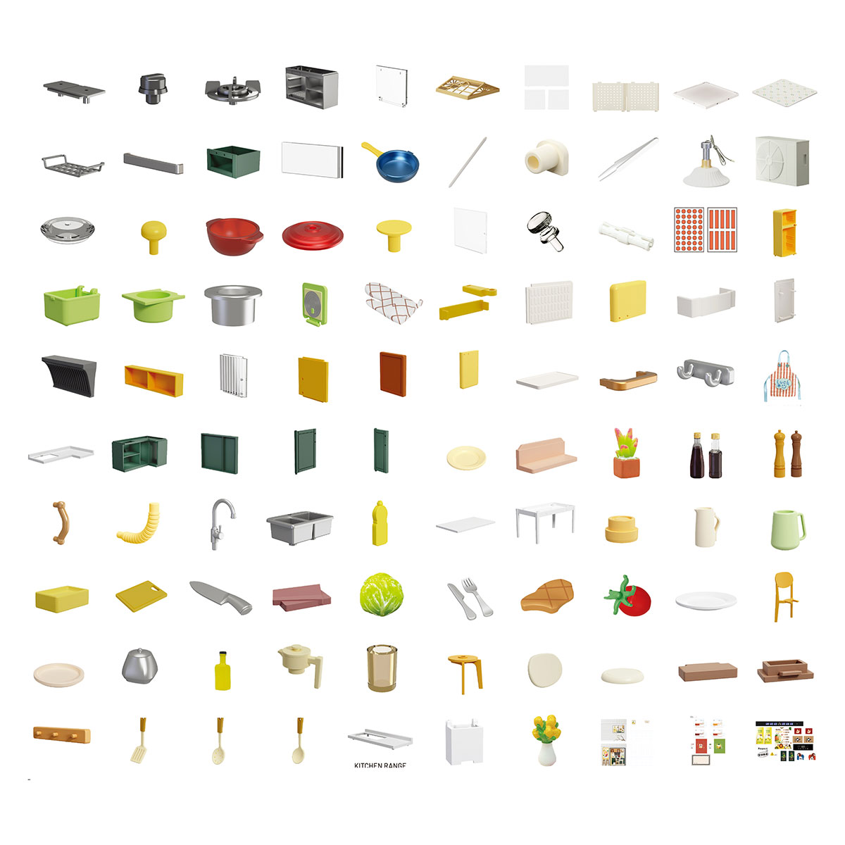 Соберите поэтапно функциональное кухонное пространство с шкафами, полками и бытовыми аксессуарами. Детали, такие как посуда и элементы хранения, создают реалистичную и уютную атмосферу кухни.