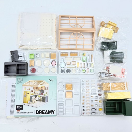 Конструктор-румбокс MINI HOUSE серии "Интерьер" - Кухня - это набор для самостоятельной сборки миниатюрного кухонного интерьера в прозрачном боксе с крышей.