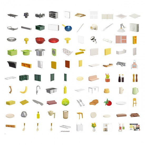 Конструктор можно комбинировать с другими комнатами серии MINI HOUSE, создавая миниатюрный дом или многоуровневые композиции с вертикальной и горизонтальной сборкой.