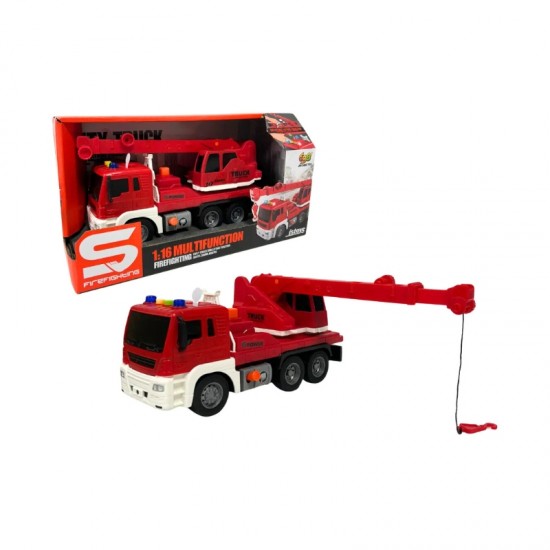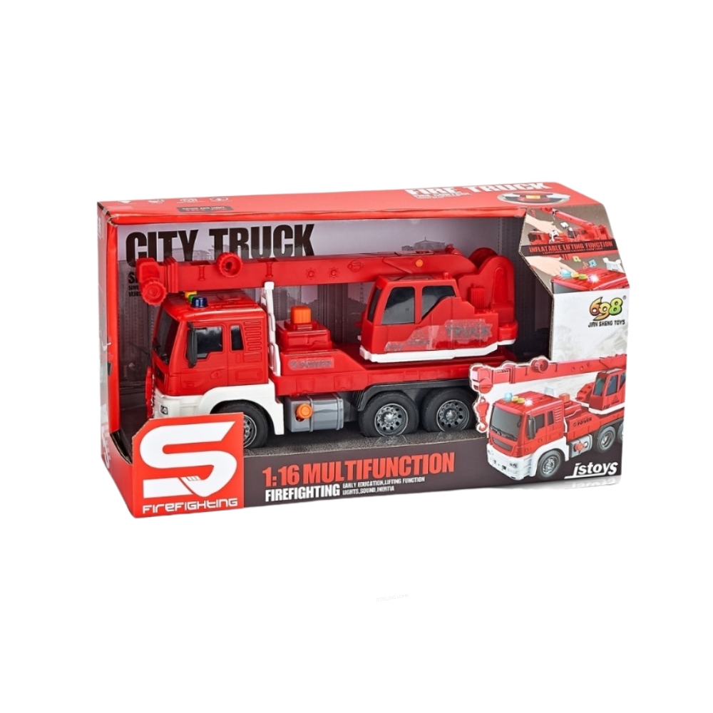 Красный кран-грузовик с фрикционным механизмом, кнопкой нажатия, звуковыми и световыми эффектами, 1:16, JSTOYS, ZJA278622