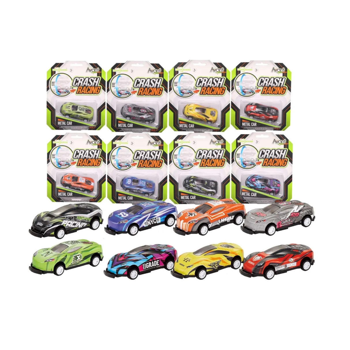 Гоночная металлическая машинка с механизмом pull-back Crash Racing в ассортименте, Боковой прыжок