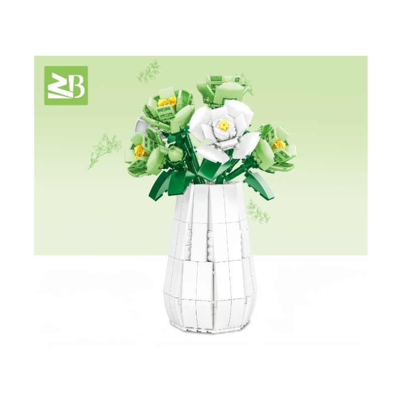Набор для сборки букета из 5 цветов в вазе, 568 деталей, ZJA386113