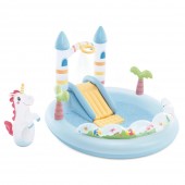 Надувной игровой центр Intex "Замок Единорога" (Unicorn Castle) с горкой, фонтаном и игрушкой, 196x178x127 cm, 234 L, max. 54 kg, 2+, код 56148