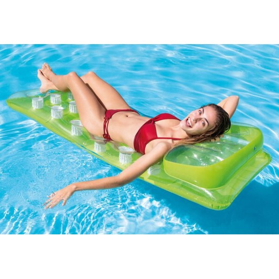Наслаждайтесь отдыхом на воде с удобным надувным матрасом INTEX с встроенной подушкой. Идеален для пляжа, бассейна или отпуска у озера.