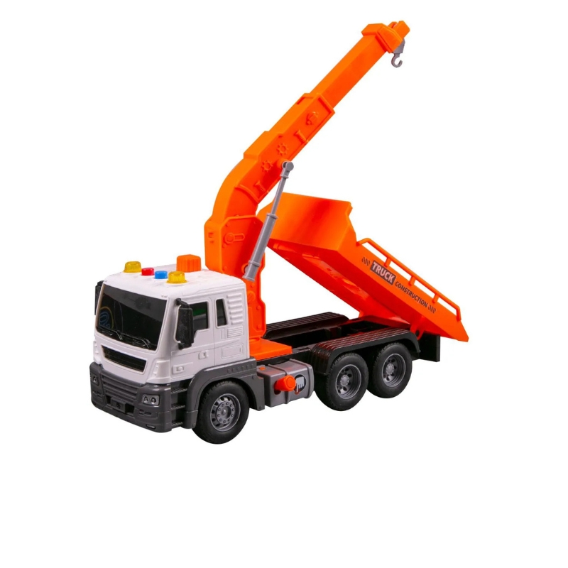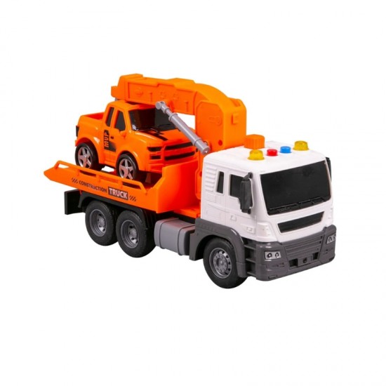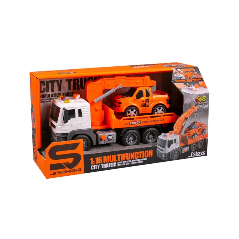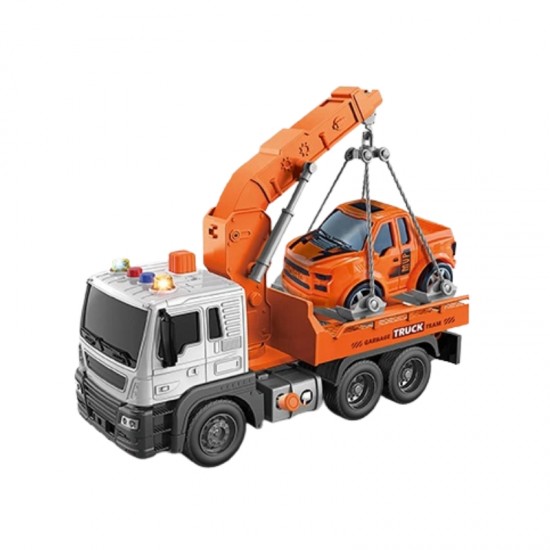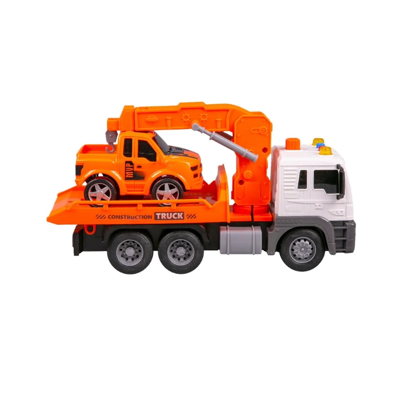 Оранжевый эвакуатор с краном и фрикционным механизмом, кнопкой управления, со звуком и светом, 1:16, JSTOYS, ZJA278625
