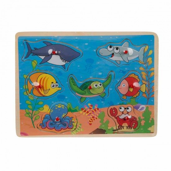 Пазл деревянный с кнопками Морские животные, 7 эл. Woody