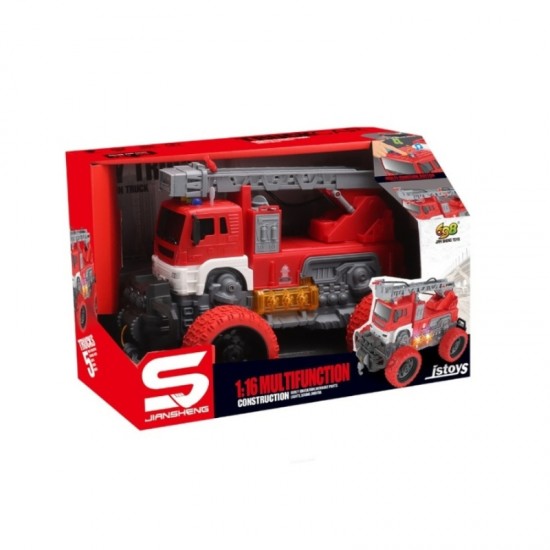 Пожарная машина с большими колесами, водяным шлангом, инерционным механизмом, светом и звуком, 1:16, JSTOYS, ZJA327123