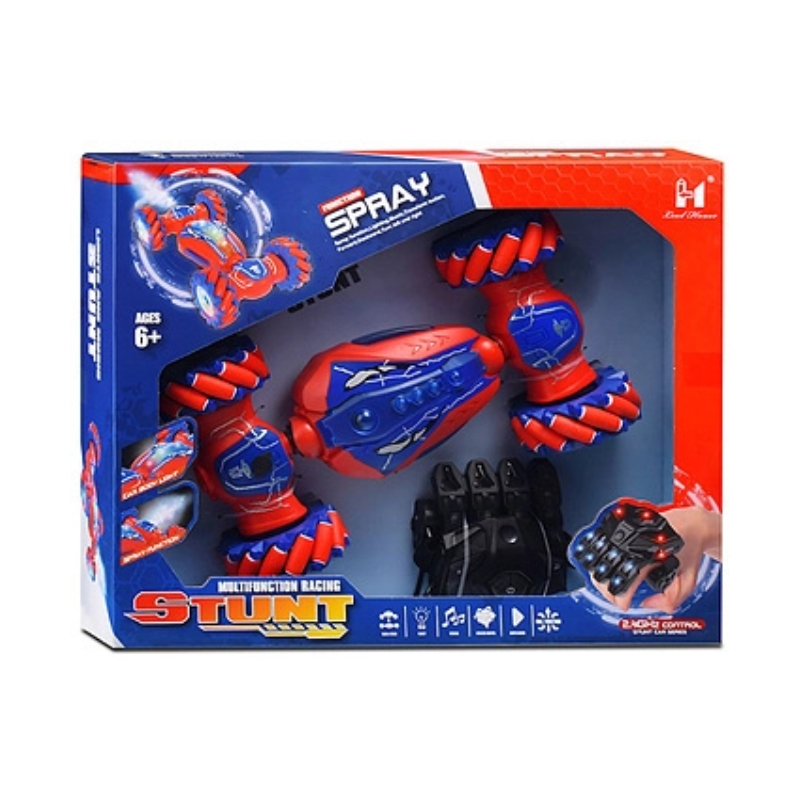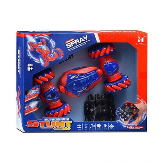 Радиоуправляемая машина 4WD для трюков, со светом, музыкой и эффектом пара, управление перчаткой, аккумулятор 3,7V, USB-кабель, красно-синий цвет, ZJA394355