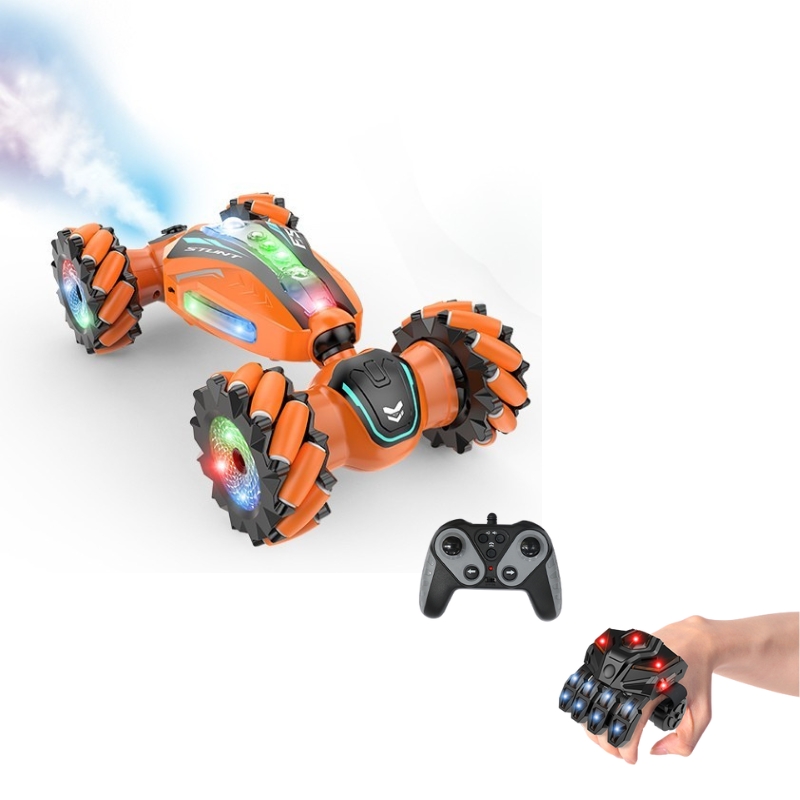 Радиоуправляемая машина 4WD для трюков, со светом, музыкой и эффектом пара, управление перчаткой, аккумулятор 3,7V, USB-кабель, оранжевый цвет, ZJA391486