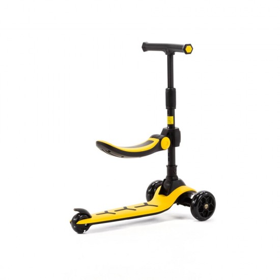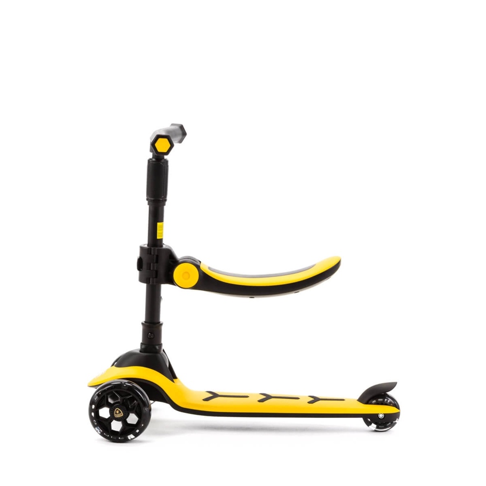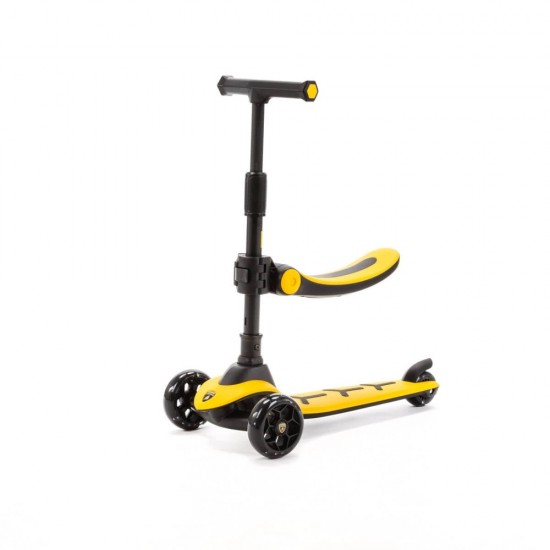 Самокат Lamborghini 2-в-1 с сиденьем и LED колесами, 3 колеса, желтый, Adamex