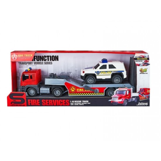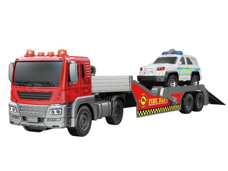 Транспортный эвакуатор (грузовик-платформа) с фрикционным механизмом, со звуком и светом, 1:16, JSTOYS, ZJA375396