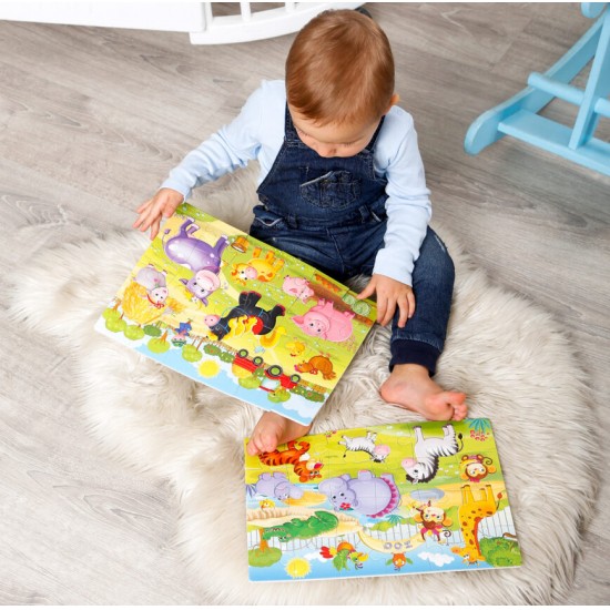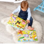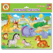Мягкие объемные детали из вспененного полимера. Пазлы разделены на 24 элемента. Размер собранного пазла - больше формата А4. Возраст 3-4 года.