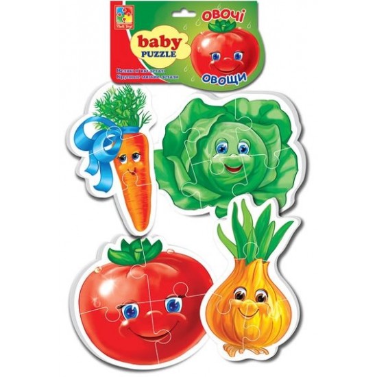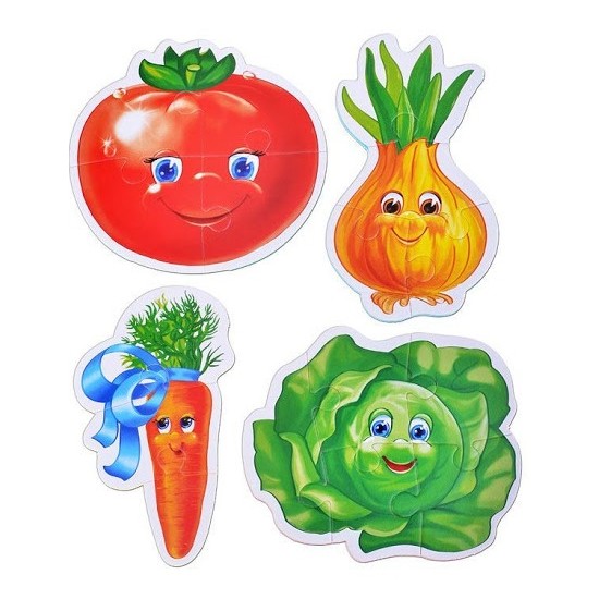 Мягкие объемные детали из вспененного полимера. Пазлы разделены на 3-5 элементов. Возраст 2-3 года. Вид упаковки: пакет с клапаном. Особенность: в 1 упаковке - 4 пазла.