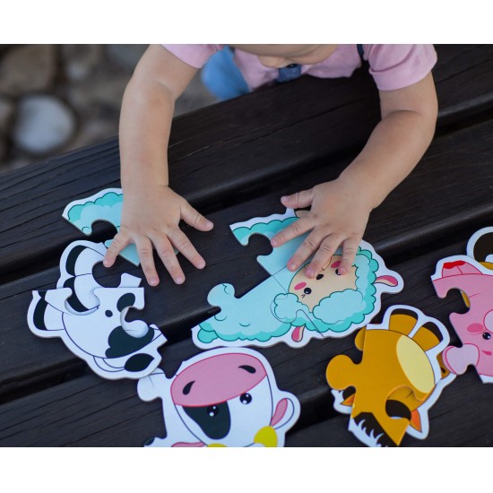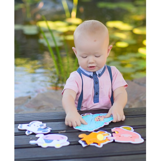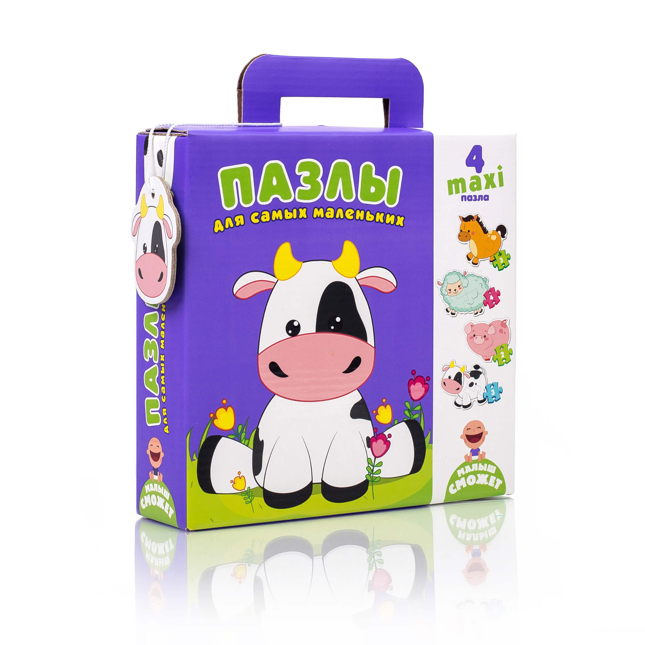 Складывай животных – познавай окружающий мир! «Пазлы для самых маленьких» - познакомят малыша с дикими и домашними животными, а также помогут развить речь, мышление и мелкую моторику. Особенности: крупные детали, толстый не гнущийся картон (2 мм). Комплектация: 4 макси пазла (12 пазловых деталей). Размер коробки (без ручки): 18*18*5 см. Язык: русский.